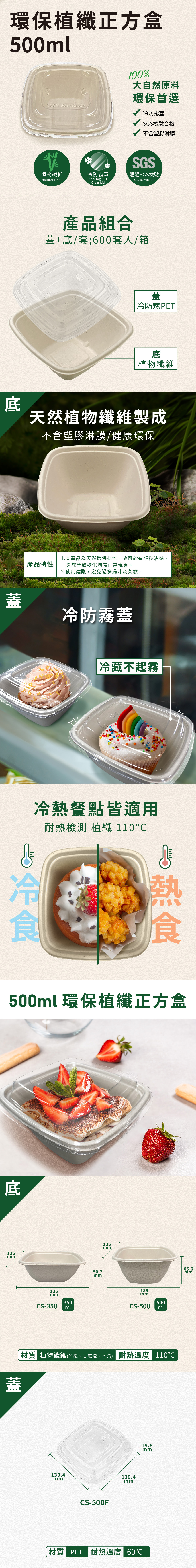 底盒:100%植物纖維,不含塑膠淋膜,耐熱達110℃