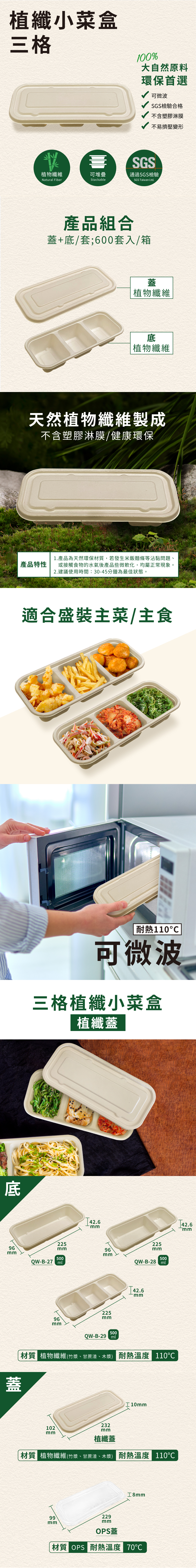 植纖小菜盒三格(植纖蓋)-600入